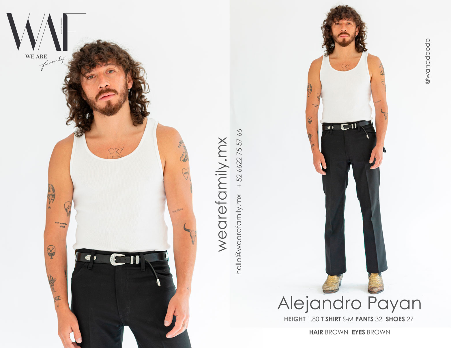 HEIGHT: 1.80 SHOES: 27 T SHIRT: S – M PANTS: 32 HAIR: BROWN EYES: BROWN
