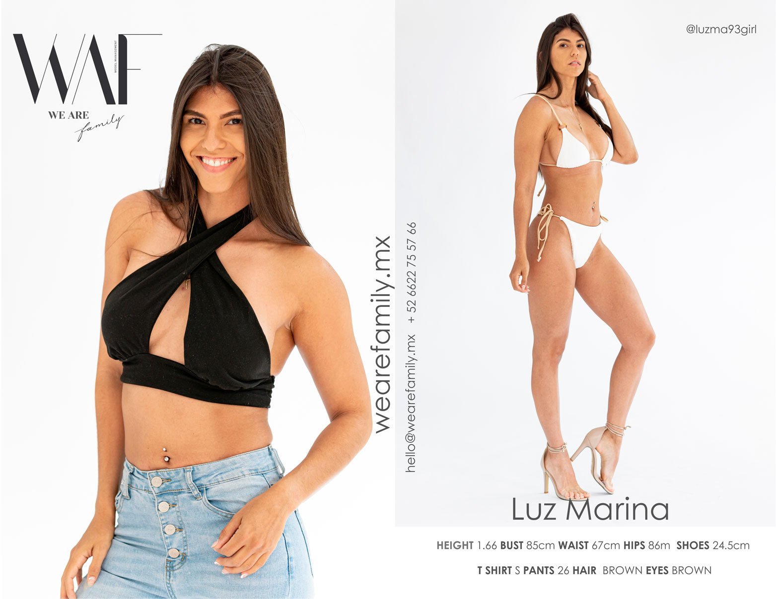 HEIGHT: 1.66 BUST: 85 cm WAIST: 67 cm HIPS: 86 cm SHOES: 24.5 cm T SHIRT: S PANTS: 26 HAIR: BROWN EYES: BROWN